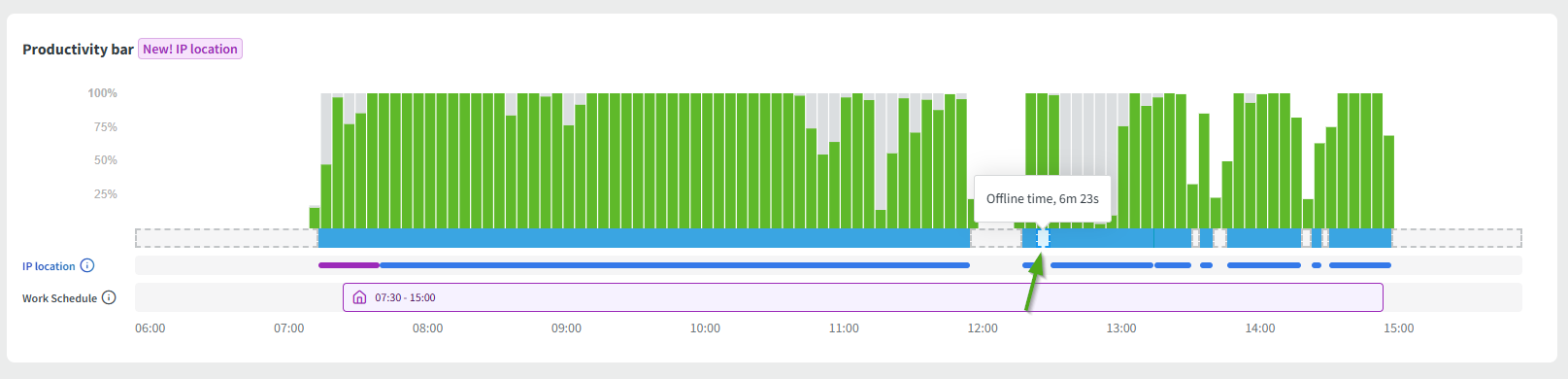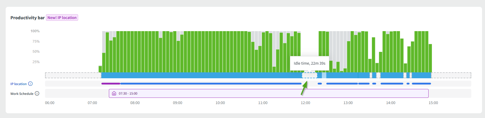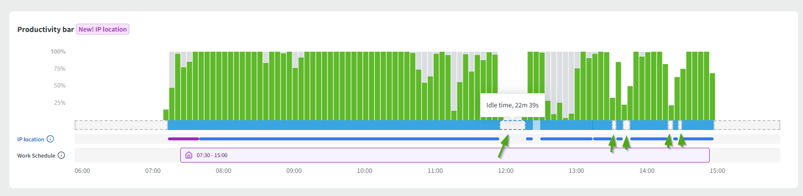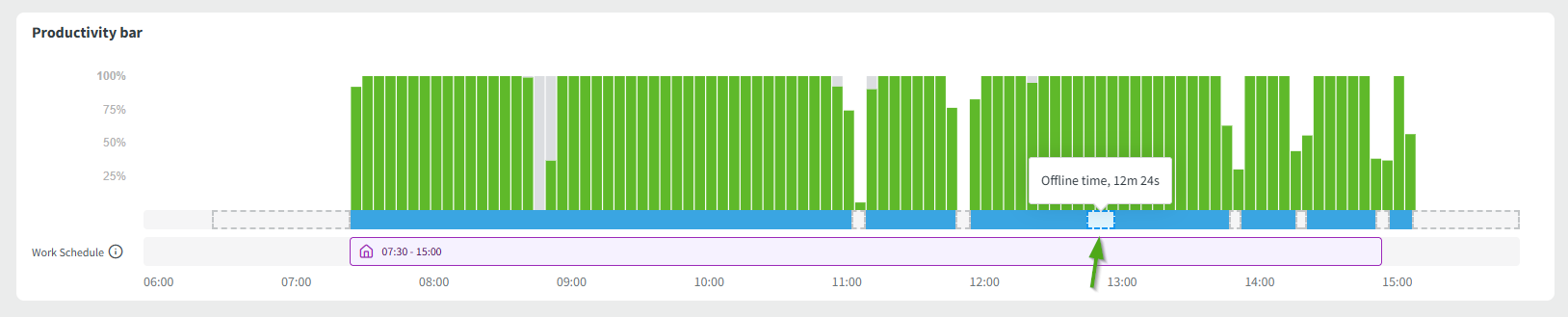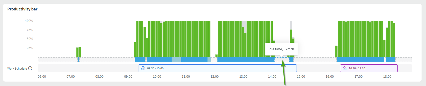 Here is a screenshot of the productivity bar with idle time gaps: