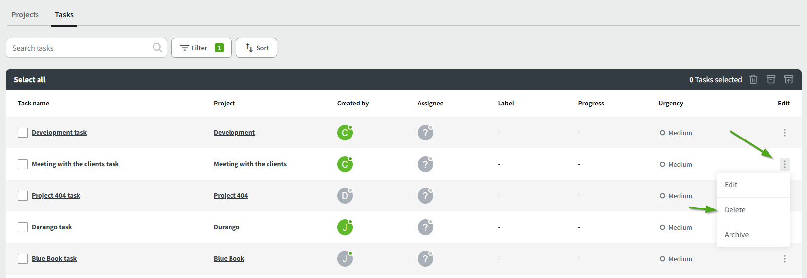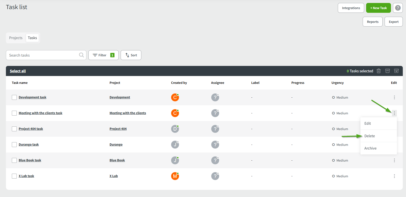 Deleting or archiving tasks helps you maintain a clean and organized workspace within DeskTime, allowing you to focus on your active tasks and declutter your task list. Keep in mind that once a task is deleted in DeskTime, it cannot be recovered. Ensure you want to permanently remove a task before confirming the deletion.