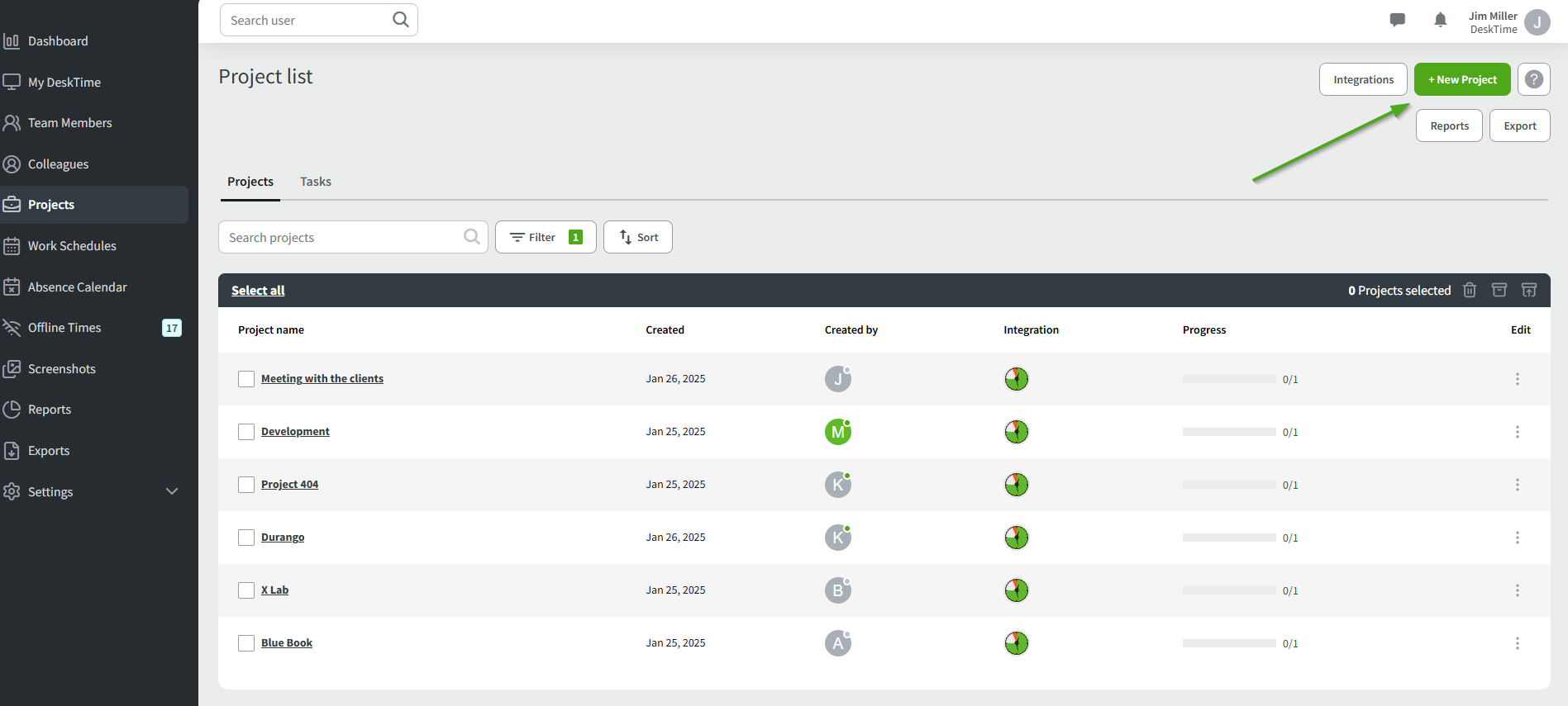 3. The third option is to import tasks and projects from your project management app (like Jira, Asana, etc.), integrating it with DeskTime. This way, the projects you create there will be automatically imported into DeskTime, and you don't need to recreate them anew to start tracking time.