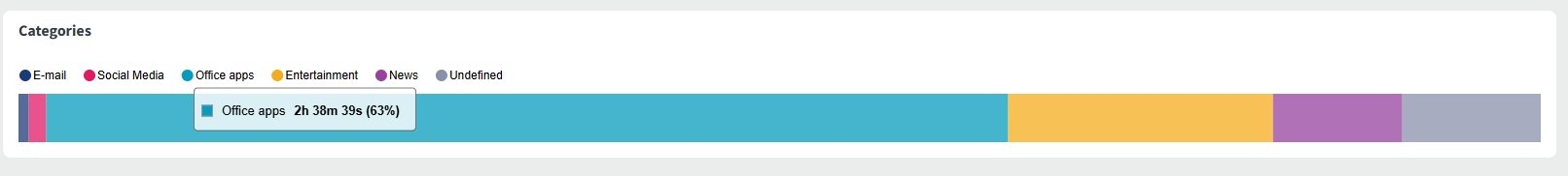 A bar chart categorizing your usage by type, such as Email, Social Media, Office Apps, or Entertainment. This includes both default and custom categories.