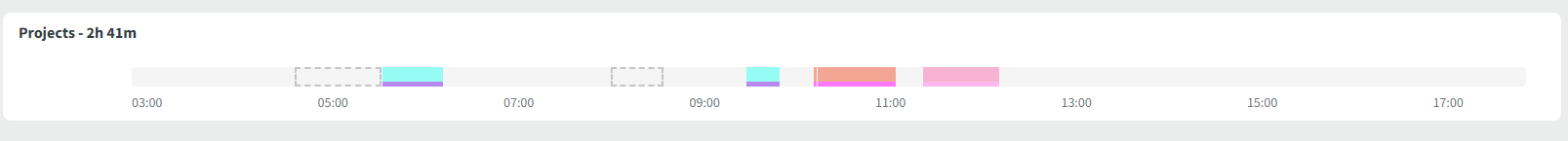 If you use Project Tracking, this bar displays the specific projects and tasks you worked on, including their exact duration and timing.