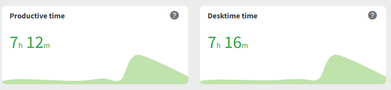 The ratio of Productive time compared to total DeskTime Time. A lower percentage doesn't always mean slacking - it is often a sign that your Neutral or Unproductive app categories need adjusting.
