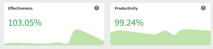 Your Productive time divided by the minimum hours defined in your settings. This metric becomes more accurate as the day progresses and you get closer to your hourly goals.