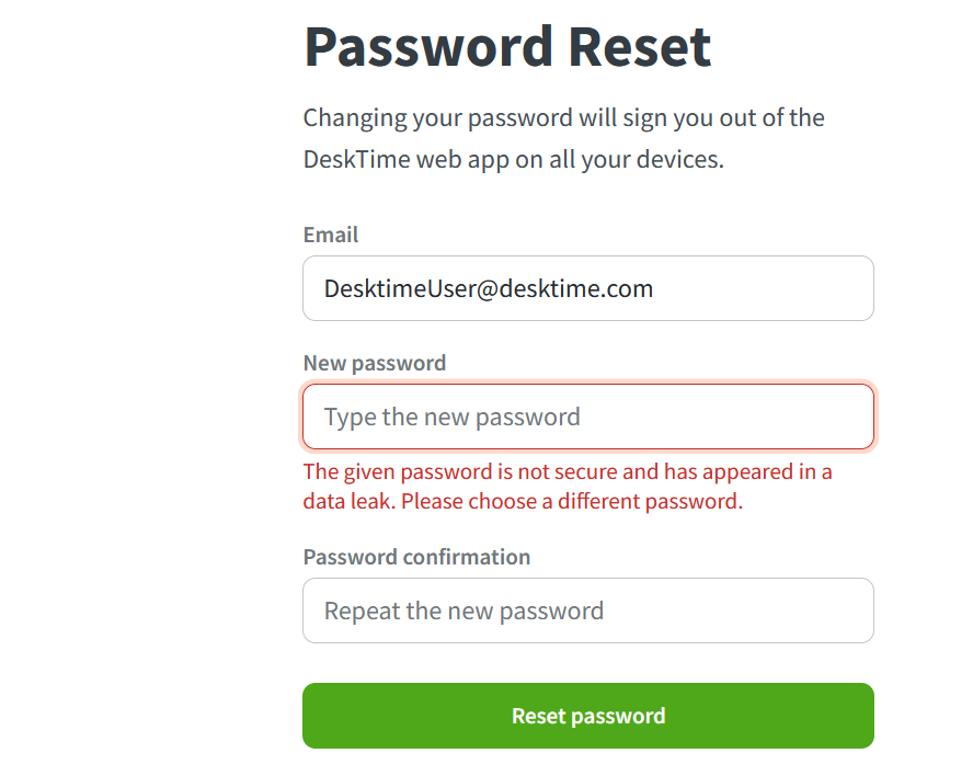 The registration process is different for an employer and employee. To create a DeskTime account, a safe password is required.