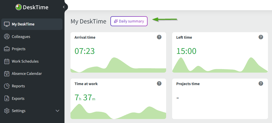 The summary is available in the My DeskTime section.