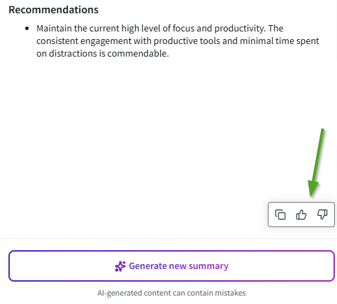 This makes it easier to spot the main focus areas, understand productivity patterns, and review how time was spent. Keep in mind that AI-generated content can contain mistakes.