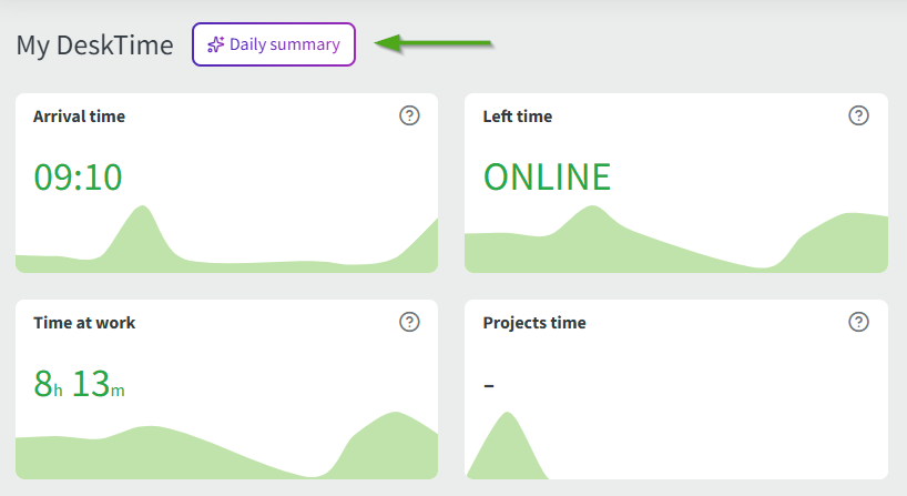 AI Summary is based on the information that’s already tracked in DeskTime, such as: