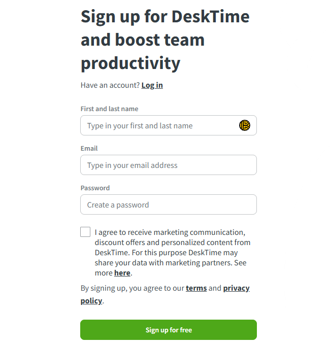 As an employer, you will be able to set up your account and download the desktop tracking app during the onboarding process when registering with DeskTime.