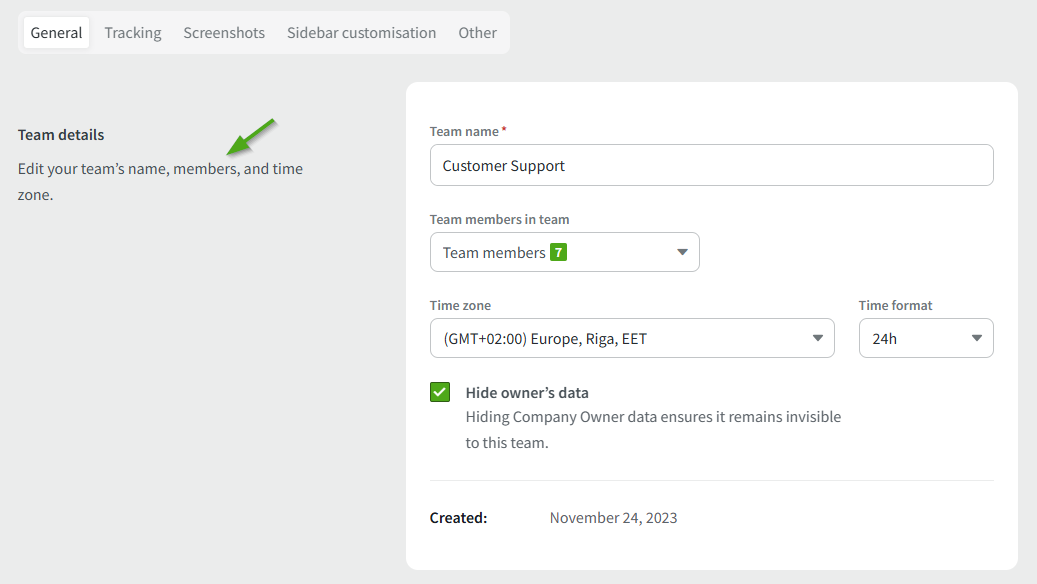And if you go to Settings -> Team Members, you can add employees to the team and edit all settings separately for members of this team.