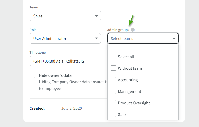 To make an employee a Company Administrator, go to Settings → Team members and Edit the user you wish to change. In the General settings, you can choose a role for the employee and assign teams for them if you make the employee a User Administrator or User Manager.