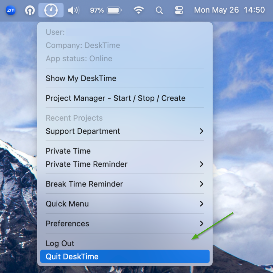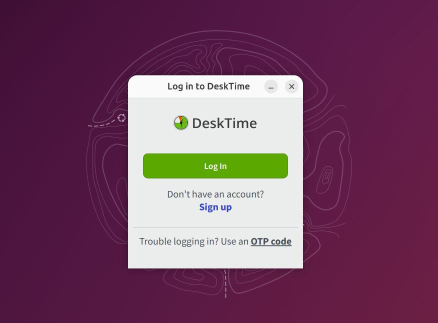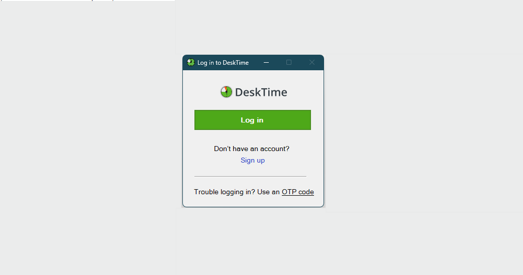 After installing and launching the DeskTime application, you'll have to log in. DeskTime will open a browser window to complete the authentication process and take you back to the desktop app once you're logged in.