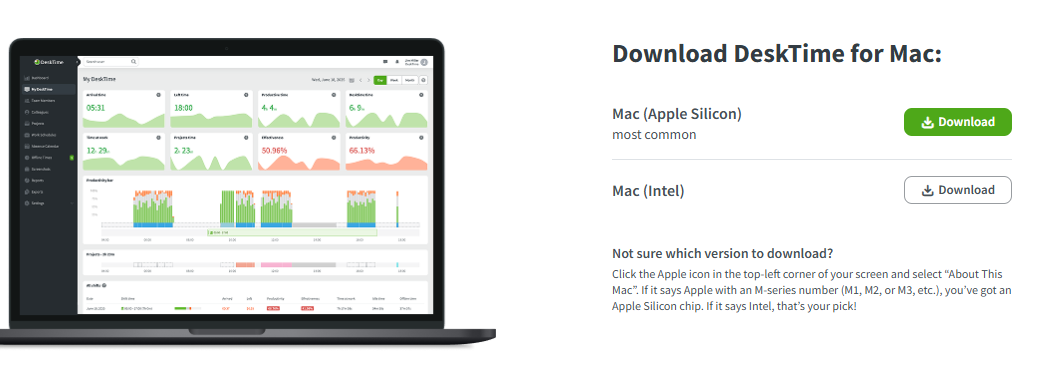 Go to the Download page and under Download DeskTime for Windows, choose one of the following options: