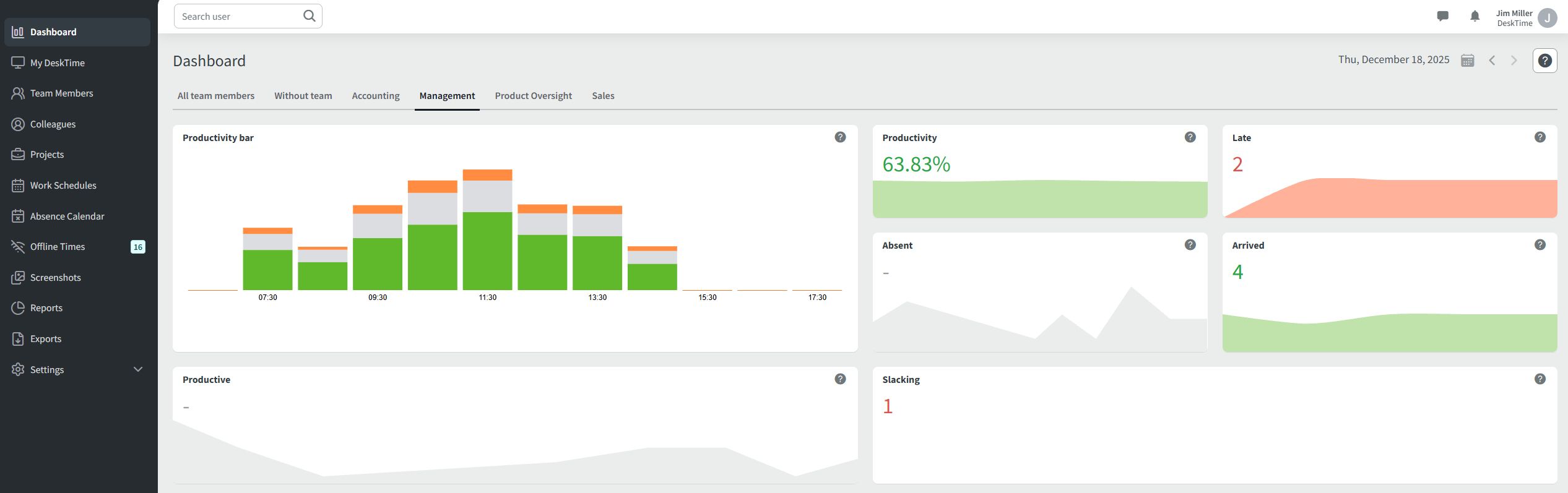 Under the title Dashboard, you can select a specific team to view the stats, excluding all other employees from the statistics.