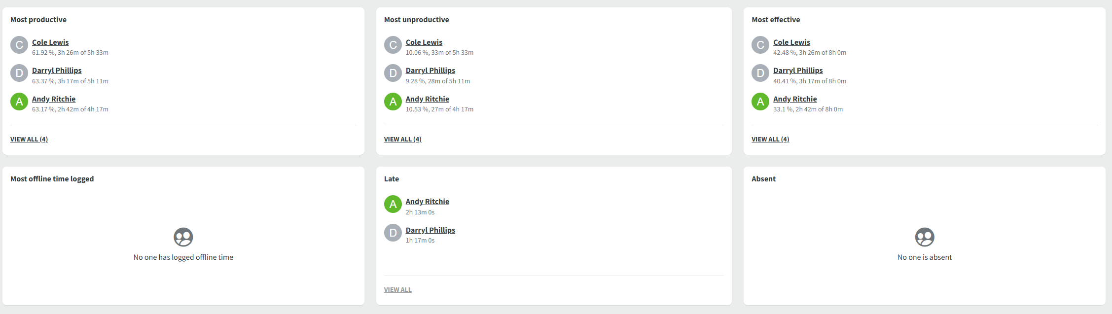 - Users who have the most offline time logged.