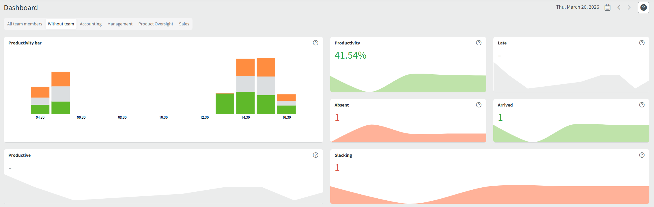 Under Dashboard, you can select a specific team to view the stats, excluding all other employees from the statistics.