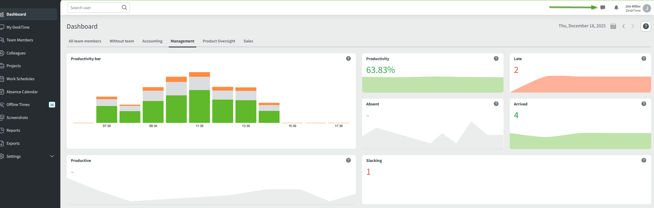 Leaving messages to all company members is as simple as it gets if you're using the DeskTime desktop app. It is possible to send a message from any of the DeskTime sections. Follow this visual guide and learn how to send messages to all your company members.