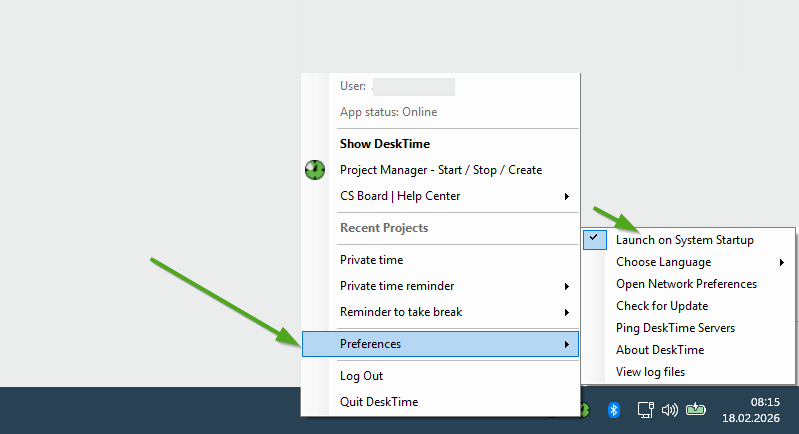 - If you're a Windows user, the DeskTime app will appear in the lower right corner of the taskbar.