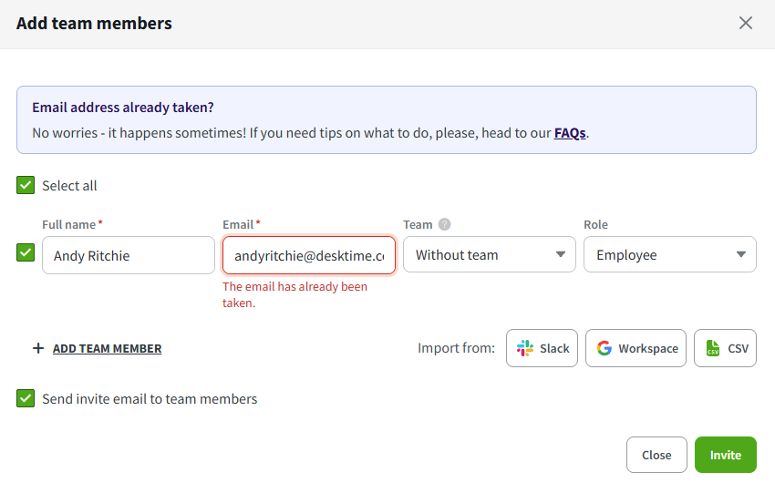 - In this case, the user needs to delete their existing DeskTime account. Only then will you be able to add it to your Company Account.