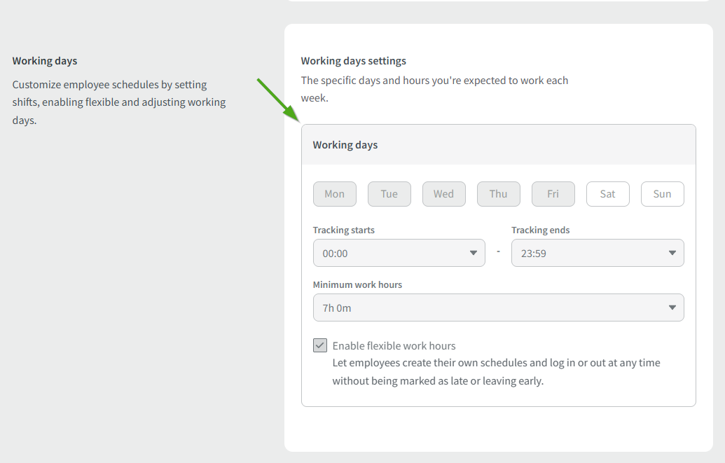 - Working and tracking days (More info here)
