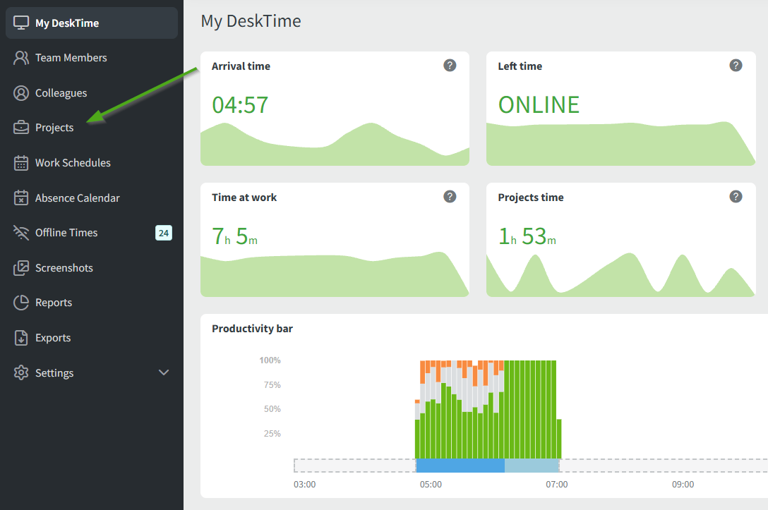 The Projects section is a feature of DeskTime that allows you to dedicate a certain amount of tracked time to a particular activity that you've done throughout the day and that you want to label in a particular way.