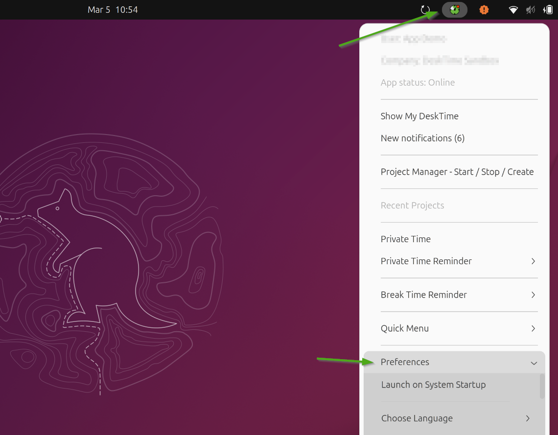 - Click on the DeskTime app icon, Preferences -> Launch on System Startup