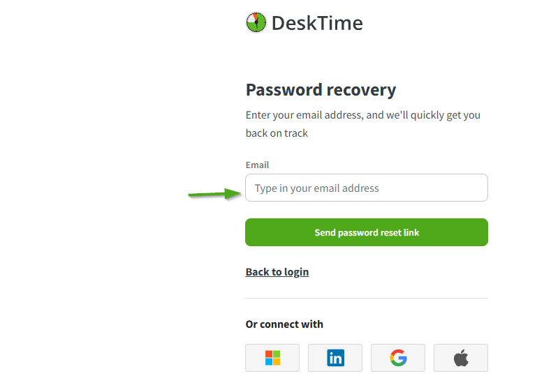 Enter the Email address you used to create your DeskTime account or user profile.