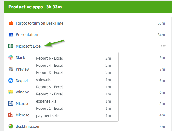 DeskTime is made to automatically capture applications/website URL's that you have visited and show them in the My DeskTime section's Productivity bar. However, the productivity bar only shows the overall Website/application that was used.