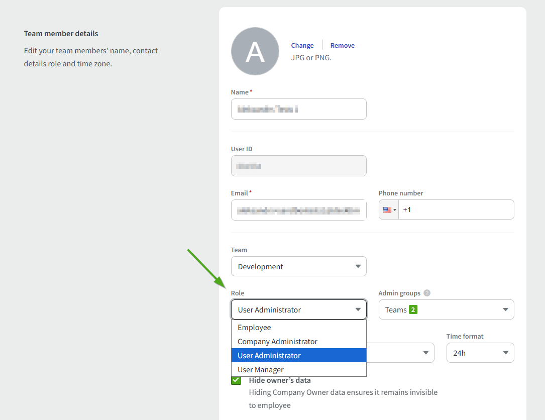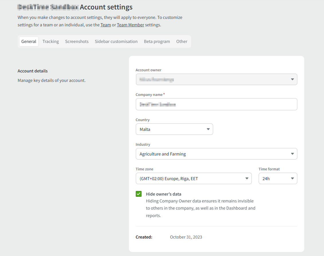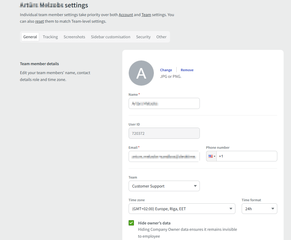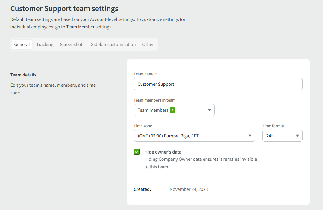 At every level (Account, Team, and Team Member), you can manage Tracking, Screenshots, and Sidebar Navigation. In addition to that, there are other role-specific settings: