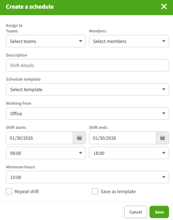Shift templates allow you to quickly assign your most-used shifts to employees without creating each shift from scratch.