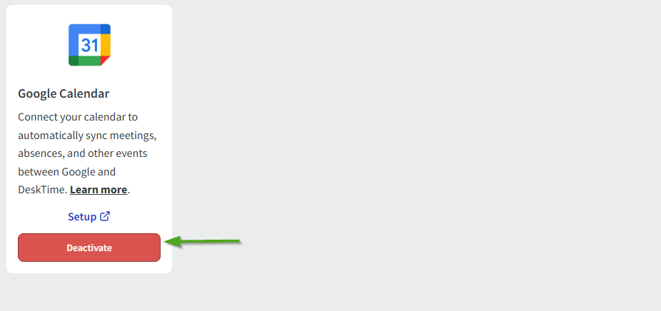 To disconnect any of the applications, go to Integrations and click Deactivate: