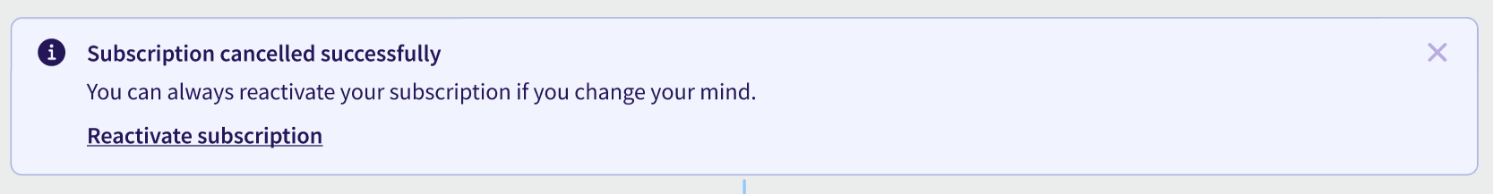 Subscriptions can be canceled only by user roles that have access to the billing section, such as Company Owner.