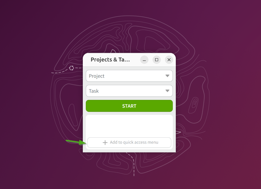 - While tracking a new project, click on Add to quick access menu to save it for easy access in the future.