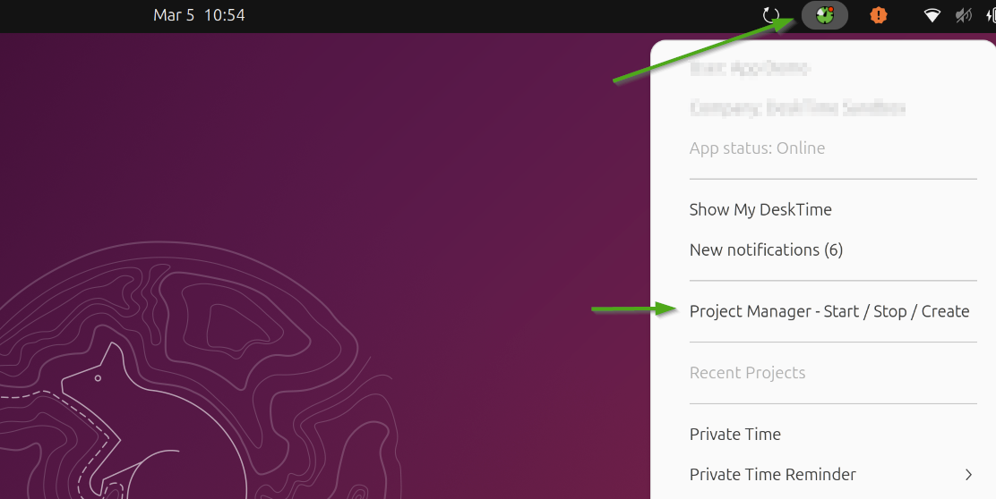 To use the project timer, you need to right-click the DeskTime icon in the taskbar -> click on Project Manager-Start / Stop / Create.