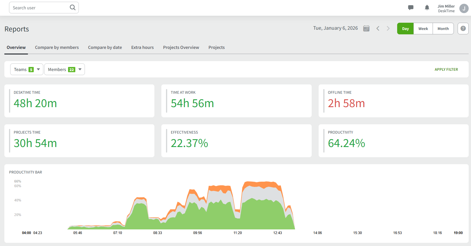 Compare by members - Here, you can compare different teams or particular Team members and evaluate their productivity and working style.