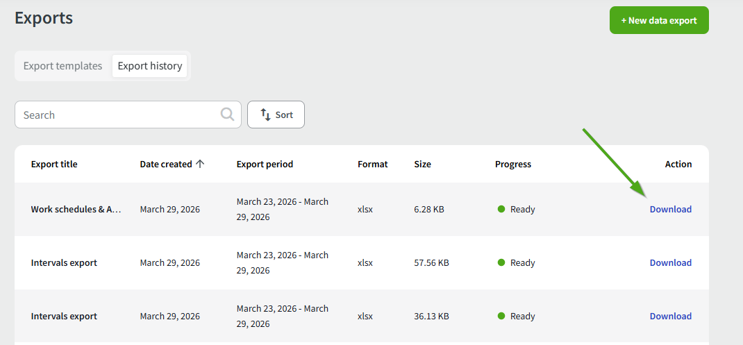 User Administrators can create exports with their own data, as well as data from employees in the teams they are managing.