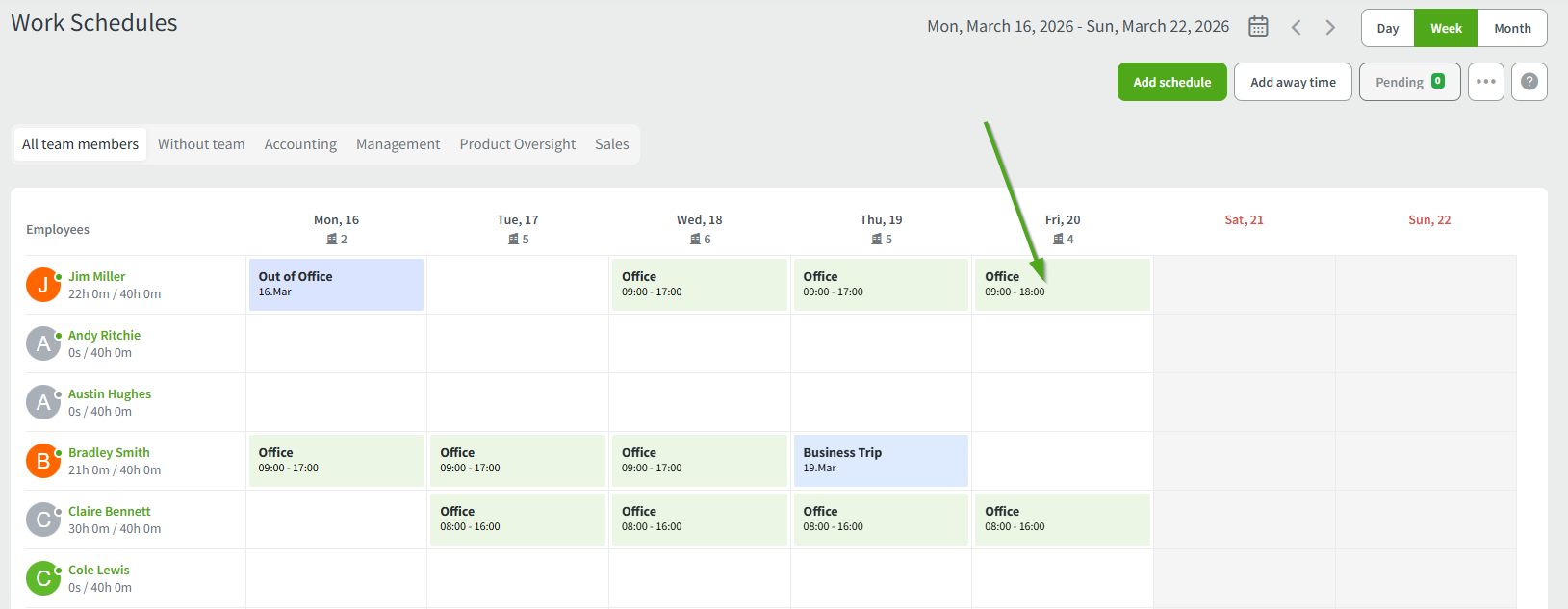 To edit a shift, click on it in the Work Schedules section.