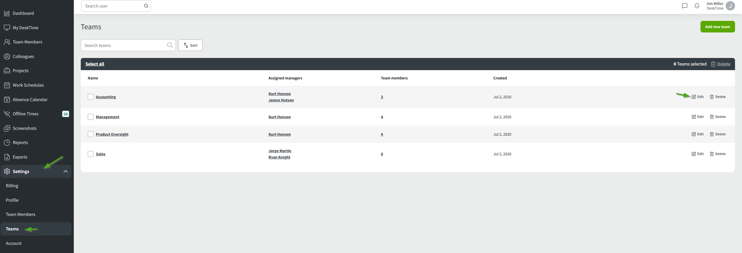 If you want all employees to be informed about their colleagues' schedules and absences, you can turn on the Team schedule visibility setting. To enable this setting for each team individually, go to Settings > Teams and click Edit on the team you want to adjust settings for.