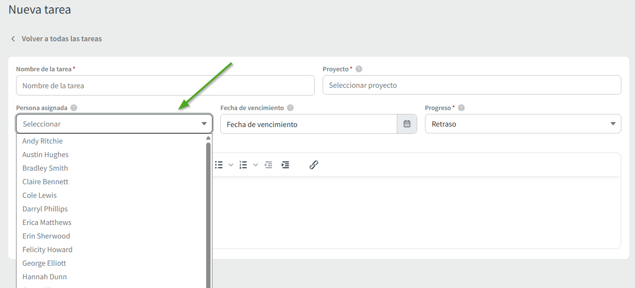 Puede asociar tareas a proyectos específicos, proporcionando un resumen detallado del trabajo implicado. Más información sobre los proyectos aquí.