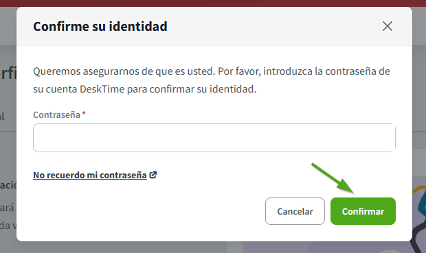 Ingrese la contraseña de DeskTime para confirmar su identidad y haga clic en Confirmar.