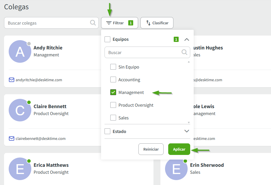 2. Utilice el filtro para encontrar los equipos correspondientes a los que pertenecen sus colegas.