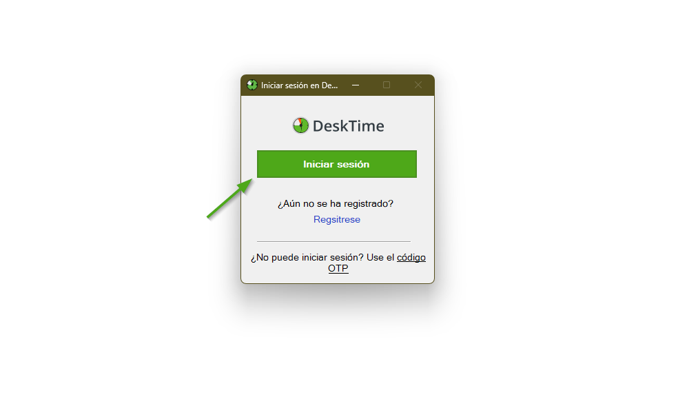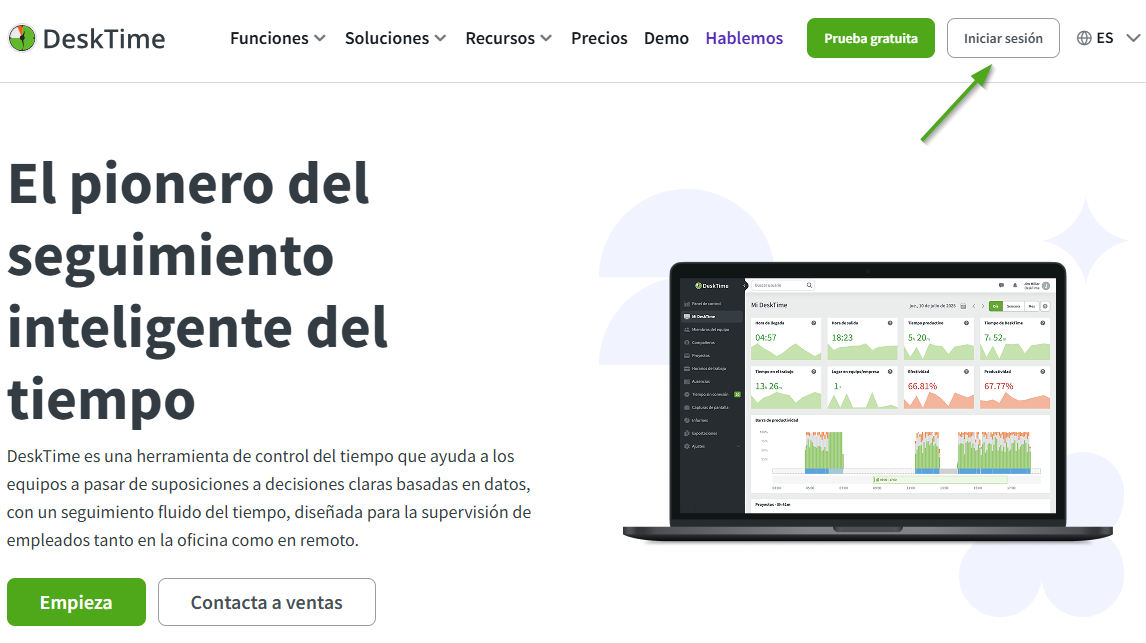 Puede iniciar sesión en DeskTime usando la versión del navegador seleccionando Iniciar sesión o a través de este enlace.