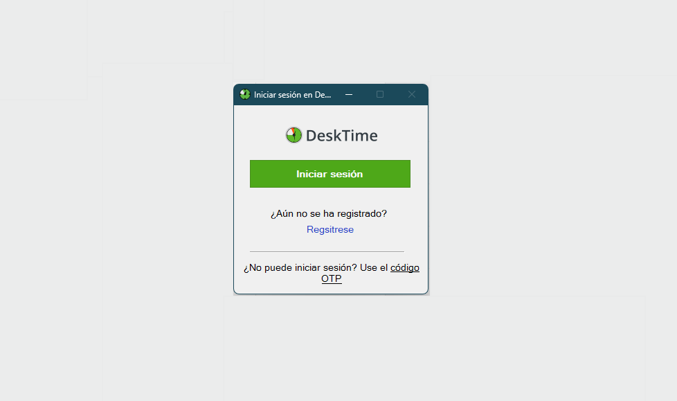 Después de iniciar sesión en la aplicación de control del tiempo por primera vez, DeskTime se iniciará con su equipo y con el seguimiento del tiempo en segundo plano. Si quiere que la aplicación deje de seguir sus actividades, existen dos maneras para hacerlo.