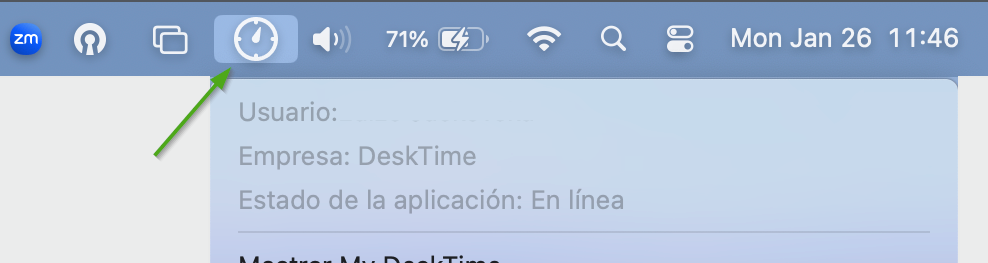 Para MacOS: El icono de DeskTime aparecerá vacío. Encuentra más información aquí.