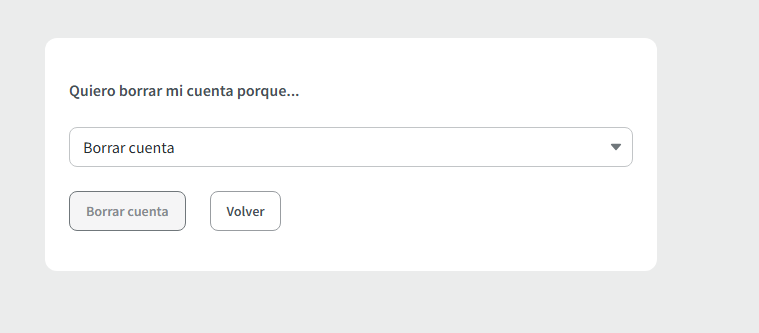 Se te pedirá que selecciones un motivo para eliminar tu cuenta.