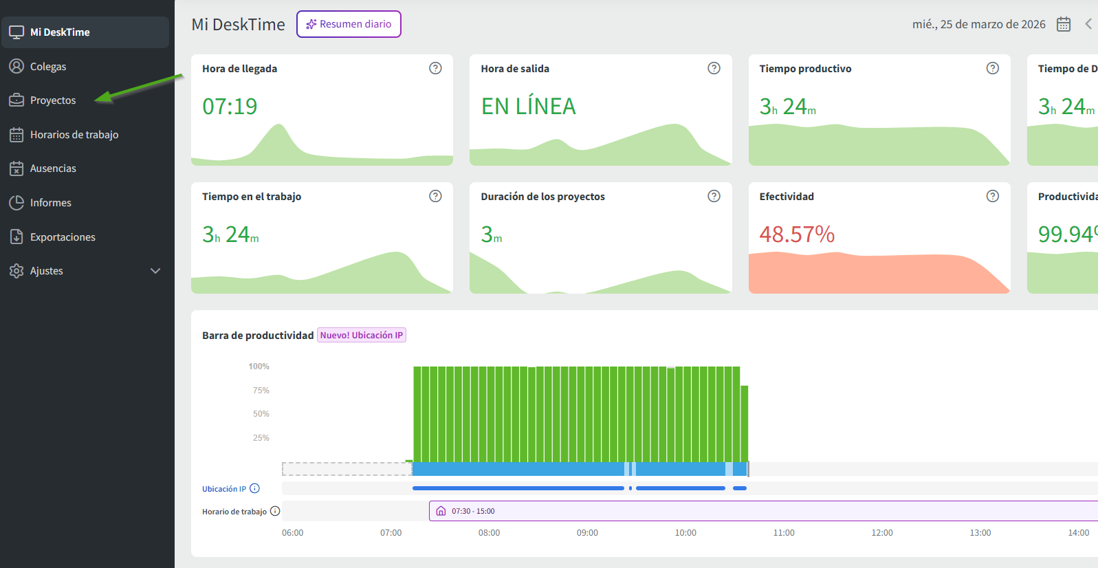 La sección Proyectos es una función de DeskTime que permite dedicar una cierta cantidad de tiempo rastreado a una actividad concreta que haya realizado a lo largo del día y que quiera etiquetar de una forma particular.