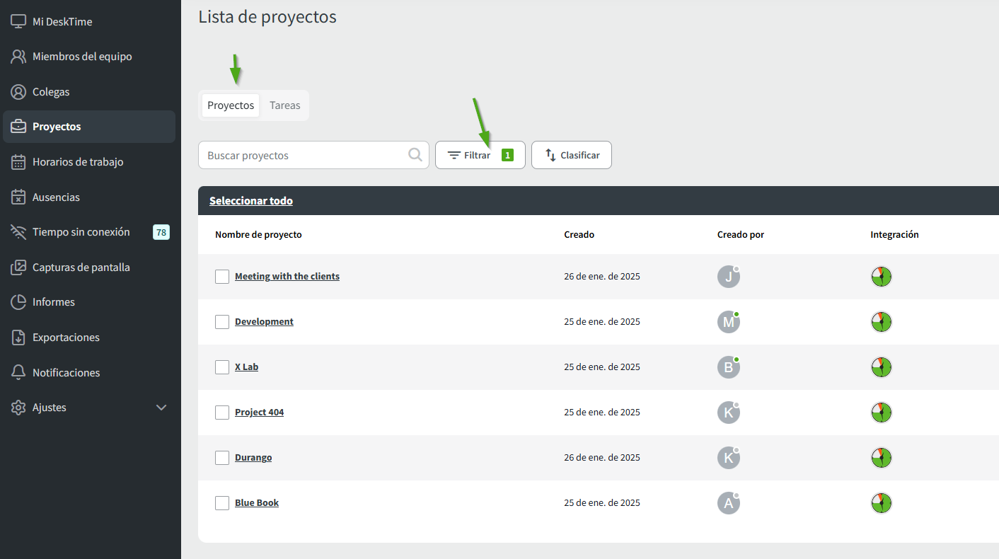 Para obtener más información sobre cómo utilizar el filtro de proyectos, haga clic aquí.