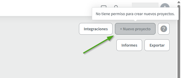 Para activar esta opción, vaya a Ajustes → Cuenta → General → Permisos de los empleados y verifique que la casilla Activar la creación de nuevos proyectos está marcada.