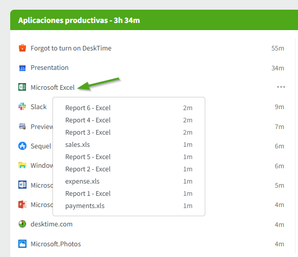 DeskTime está hecho para capturar automáticamente las URL de aplicaciones/sitios web que ha visitado y mostrarlas en la barra de productividad de la sección Mi DeskTime. Sin embargo, la barra de productividad solo muestra el sitio web/aplicación general que se utilizó.