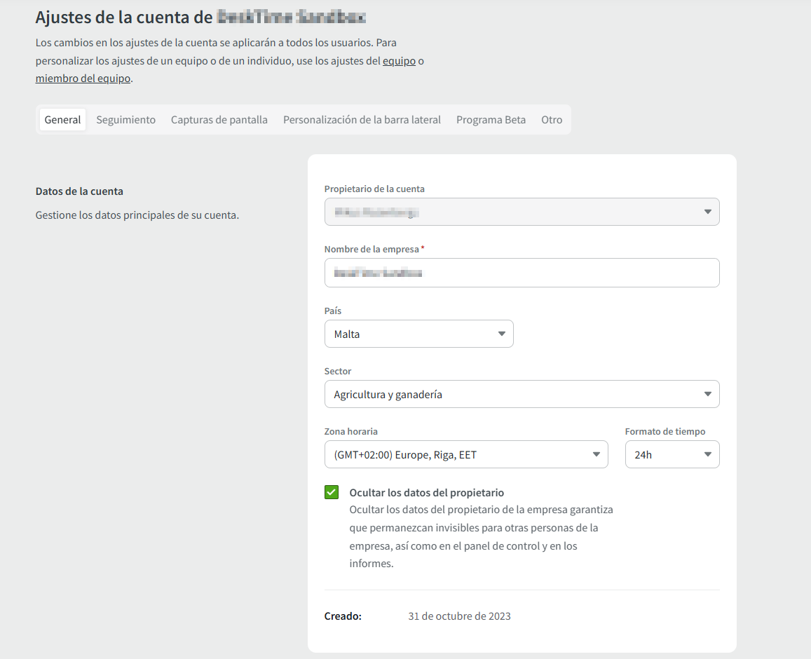 La configuración de cualquier cuenta de DeskTime se puede modificar en tres niveles distintos: