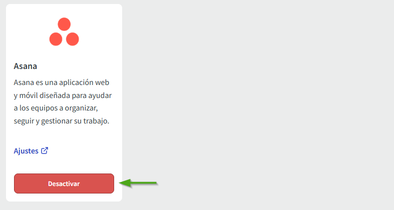Para desconectar cualquiera de las aplicaciones - en Integraciones haga clic en Eliminar integración: